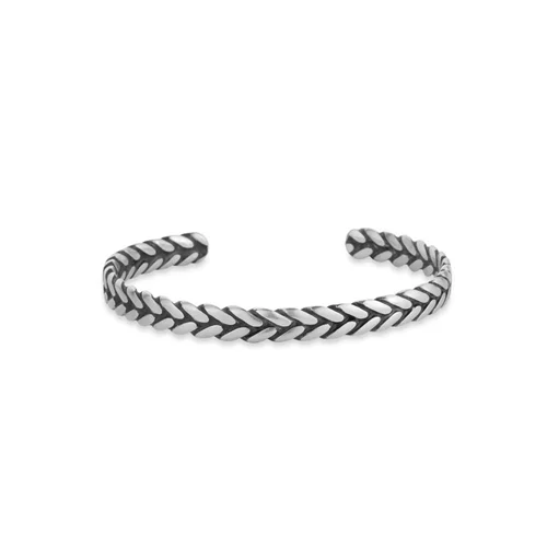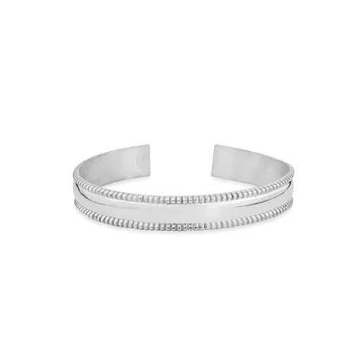 در مقابل، دستبند بنگل نقره مردانه اغلب طراحی نیمدایرهای یا بازشونده دارد و ممکن است با قفل یا لولا بسته شود. این نوع بنگلها پوشیدن آسانتری دارند و تنوع طراحی بیشتری را شامل میشوند؛ از مدلهای مینیمال گرفته تا سنگدار یا حکاکیشده.